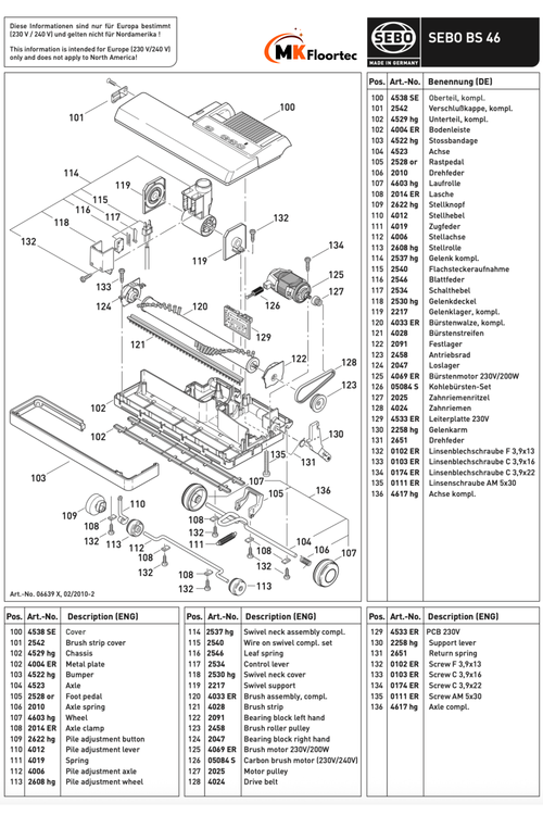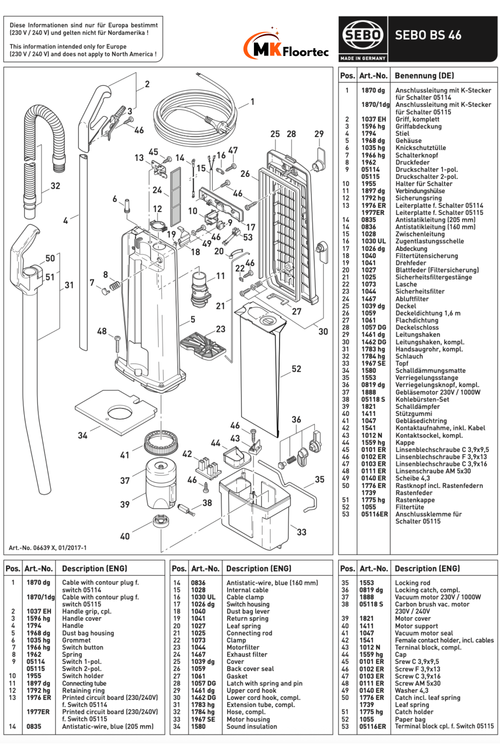 Sebo BS360 BS36 BS46 Vacuum Spares and Parts
