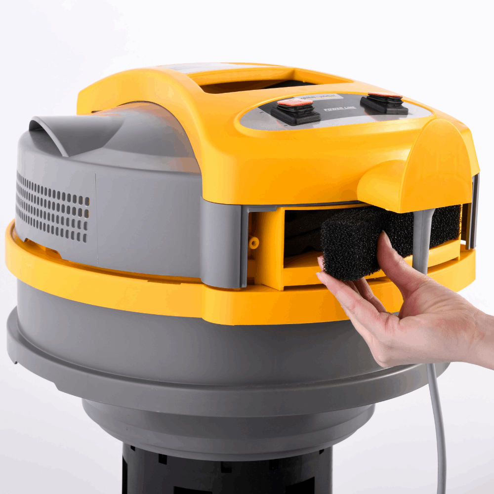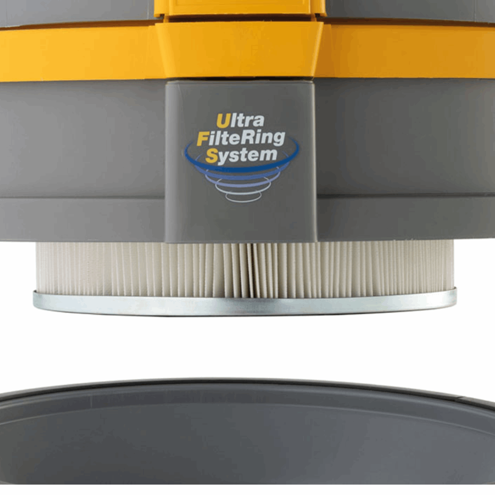The advanced filtration system not only protects the user but also prolongs the lifespan of the machine, enhancing overall efficiency. It comprises a washable M-Class PTFE cartridge filter, a wet ball float filter, and a dry-use textile filter. The Ultra FilteRing System (UFS) technology boosts vacuum efficiency with a unique polypropylene spacer ring, ensuring the M-class cartridge filter is always properly installed for optimal suction and maximum motor protection, even during misuse.