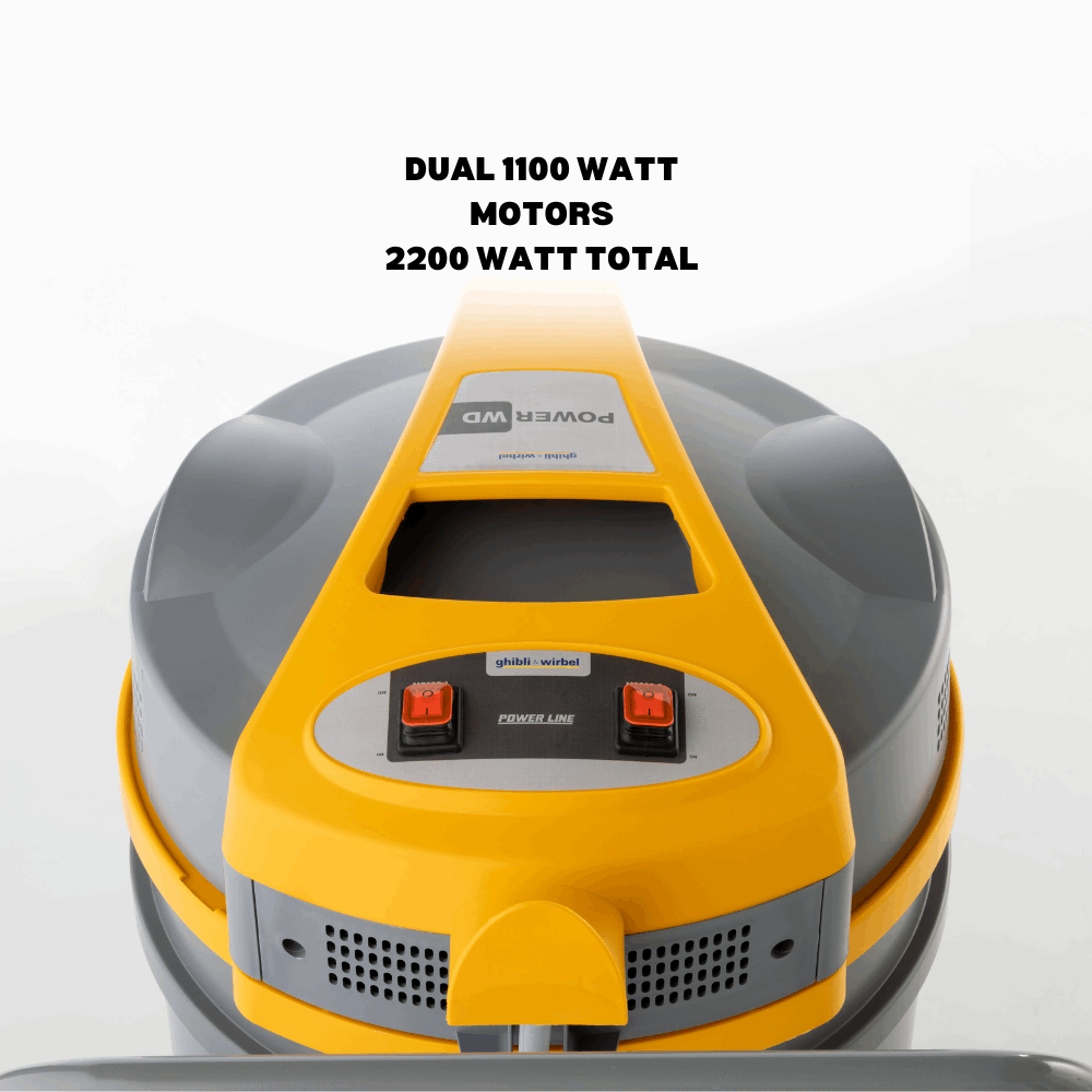 The Ghibli Industrial Wet and Dry Vacuum Cleaner Power WD 90.2 PD SP is a professional large and robust wet and dry vacuum cleaner, boasting an impressive 90-litre SHOCK-PROOF wet container and dual 1100 Watt motors, providing a total of 2200 Watts. These motors can be used separately or together, depending on the required cleaning power. An integrated drain dump hose simplifies the emptying process. Whether you are dealing with wet or dry debris, water, or sludge, The Power WD 90.2 PD SP vacuum cleaner is specifically designed to handle any mess, making it perfect for extensive areas and heavy-duty cleaning tasks.