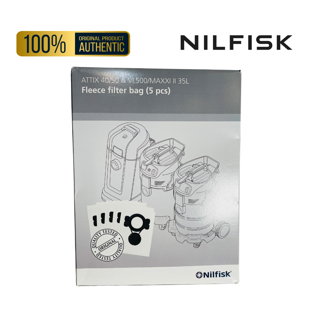 Nilfisk 107419592 ATTIX 40/50 Vacuum Cleaner Fleece Filter Bags Pack Of 5. Genuine 35-litre Nilfisk Hoover Dust Bags.