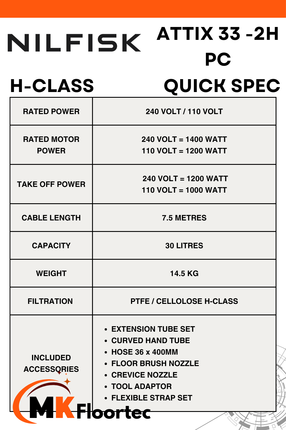 Nilfisk Attix 33-2H PC H-Class Hazardous Dust Vacuum Cleaner