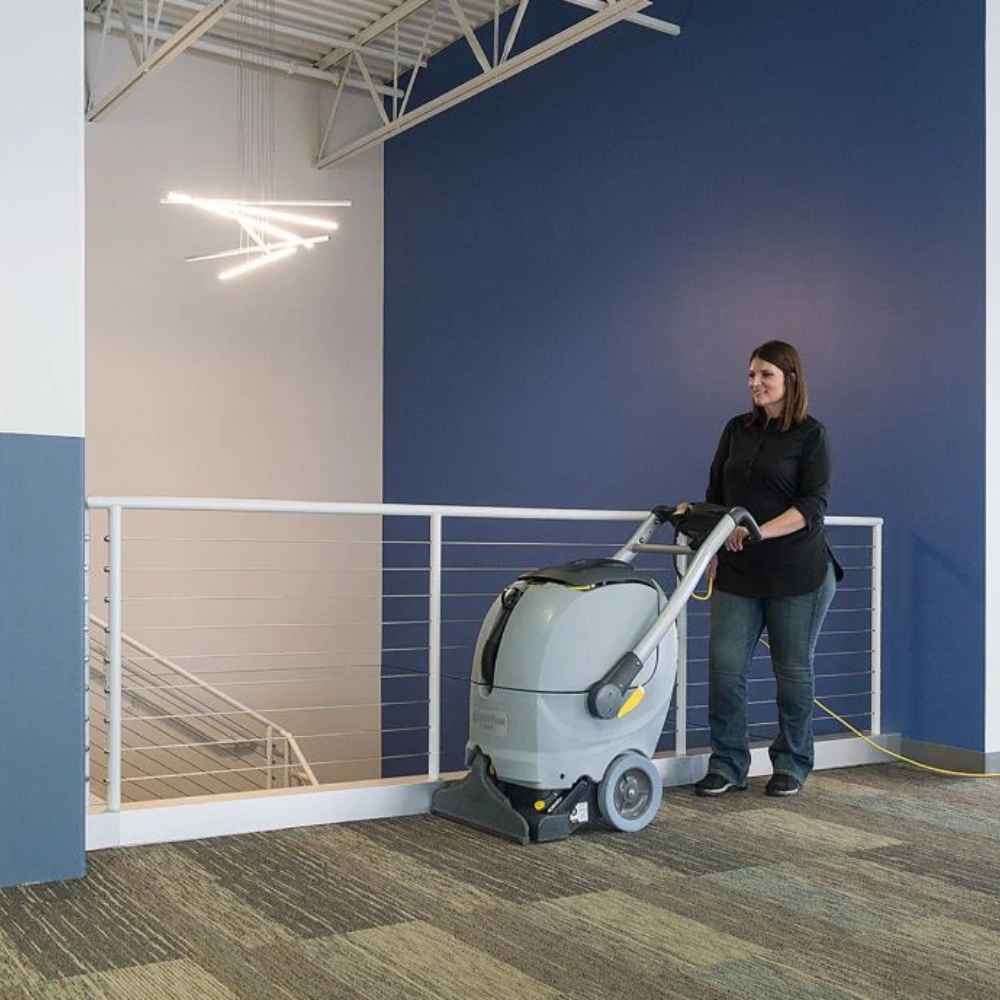 The Nilfisk ES300 Industrial Walk Behind Carpet Cleaner Extractor is an excellent option for caring for large carpeted spaces. It is specifically engineered to clean both high-traffic and lightly used carpet areas, effectively removing dirt and moisture while meeting top cleaning standards to prolong carpet life.