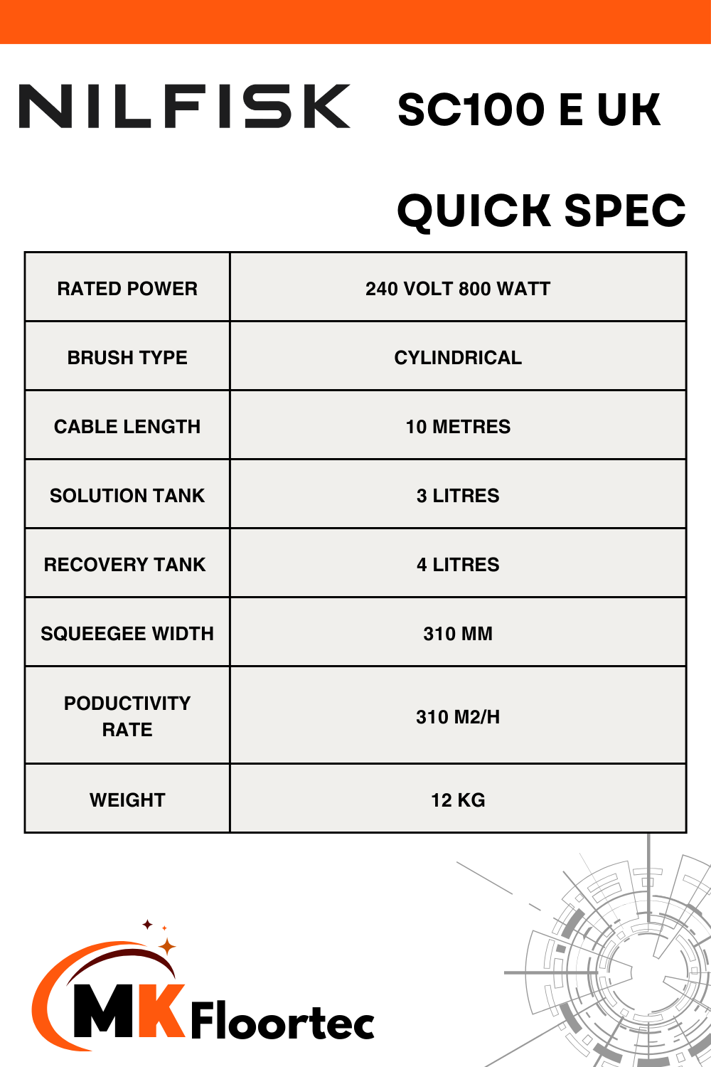 Nilfisk SC100 Compact Floor Scrubber Dryer. Upright Floor Cleaning Machine. Mains Cable Powered. Ideal for Smaller Areas.