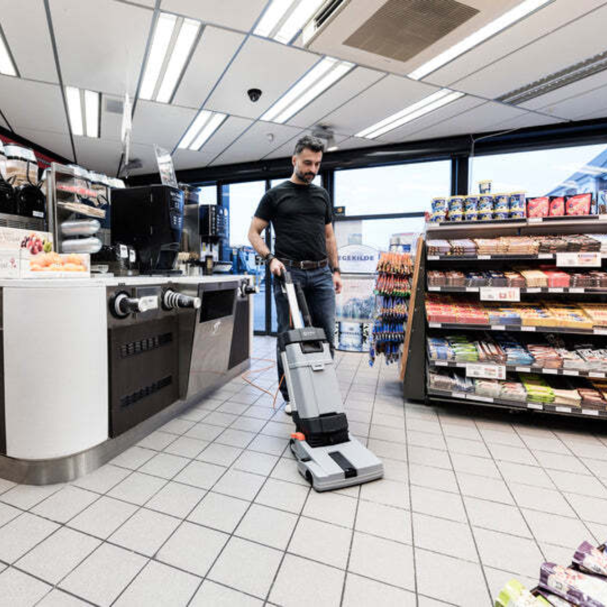 The Nilfisk SC100 scrubber dryer is a great choice, designed for user convenience and efficiency, making cleaning tasks effortless. The SC100 is the value-for-money choice for small shops, schools, restaurants, coffee shops, petrol stations, bakeries, fast food chains, hotels, cleaning companies, and also in-home cleaning.