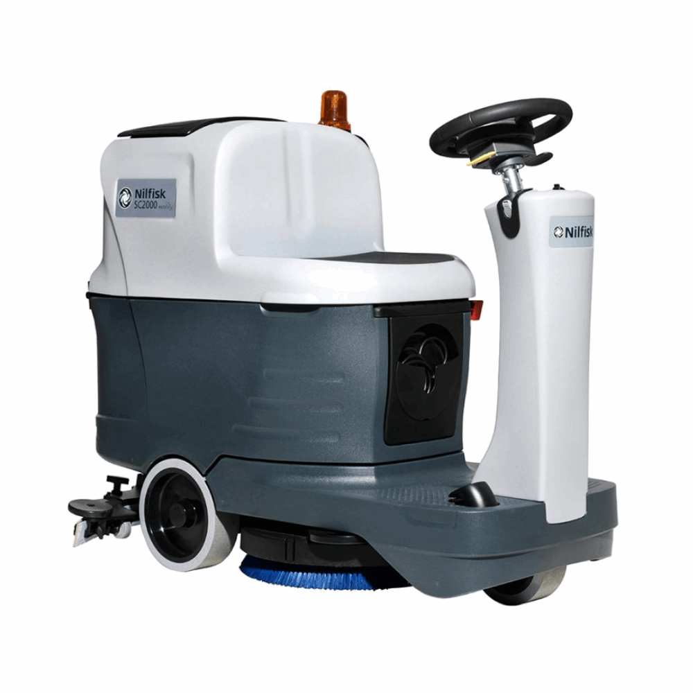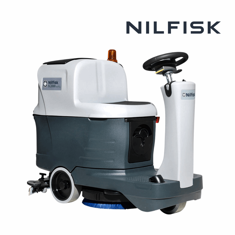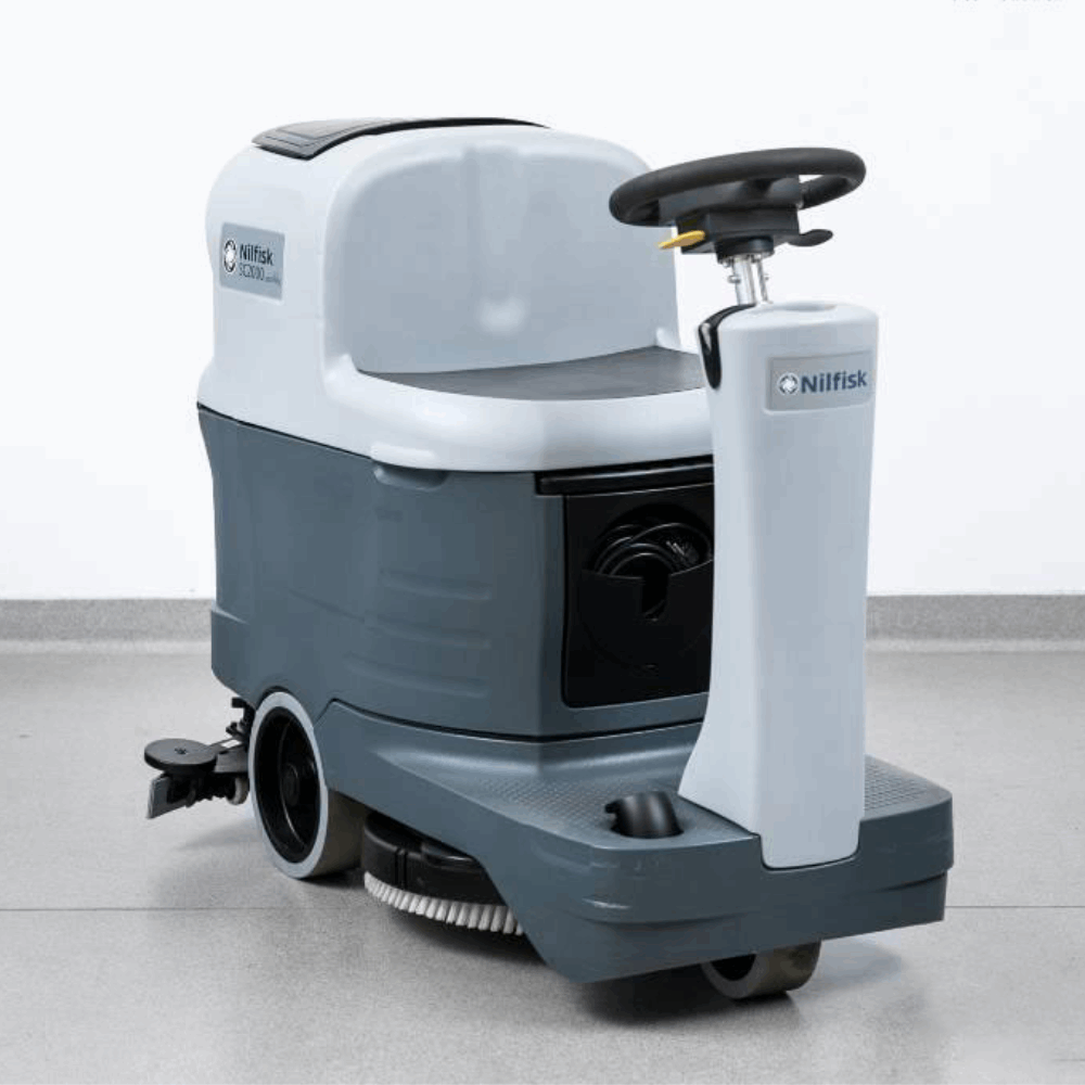 The Nilfisk SC2000 Industrial Micro Ride On Floor Scrubber Dryer significantly lessens the effort needed compared to traditional walk-behind models. As one of the most compact ride-on scrubber dryers available, it features an impressive 530mm scrub width and a 70-litre capacity.