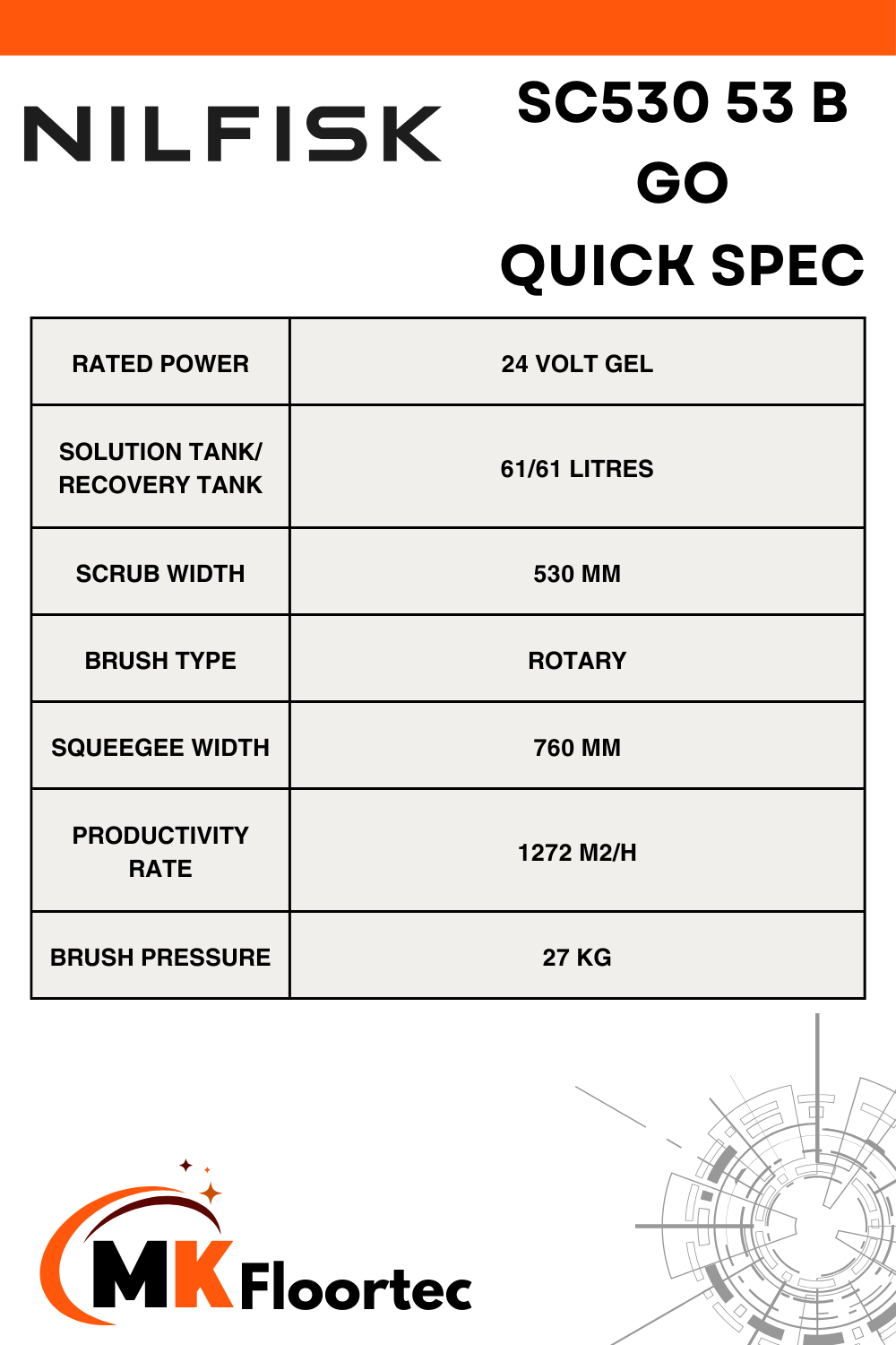 The Nilfisk SC530 B GO-Line floor scrubber dryer cleaning machine boasts an impressive capacity of 61-litres and a scrub width of 530mm, making it a straightforward and user-friendly scrubber dryer that requires minimal training for daily operation and upkeep. This highly dependable machine completes its cleaning tasks efficiently, with daily downtime limited to routine maintenance. Priced attractively and featuring low daily maintenance costs, the SC530 GO-Line offers an economical solution for scrubber dryers.