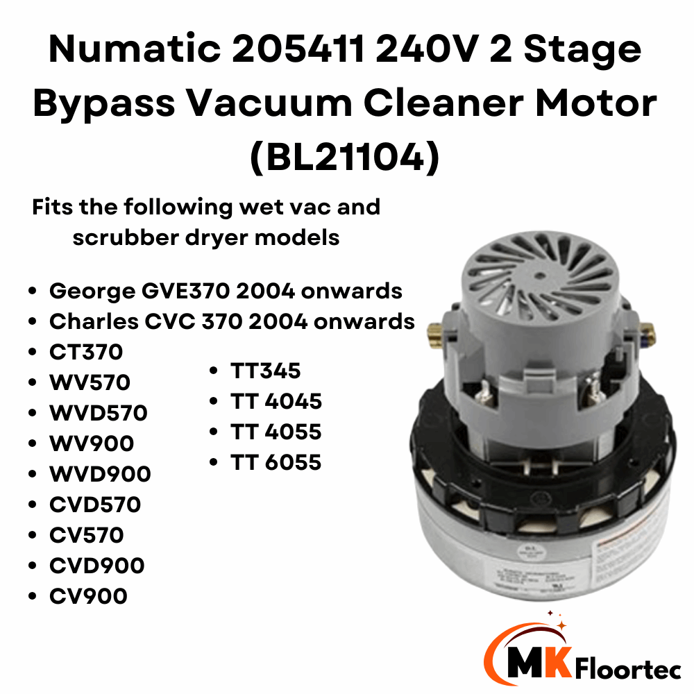 Numatic 205411 240V 2-Stage Bypass Vacuum Cleaner Motor BL21104. Wet Vac Suction Motor.