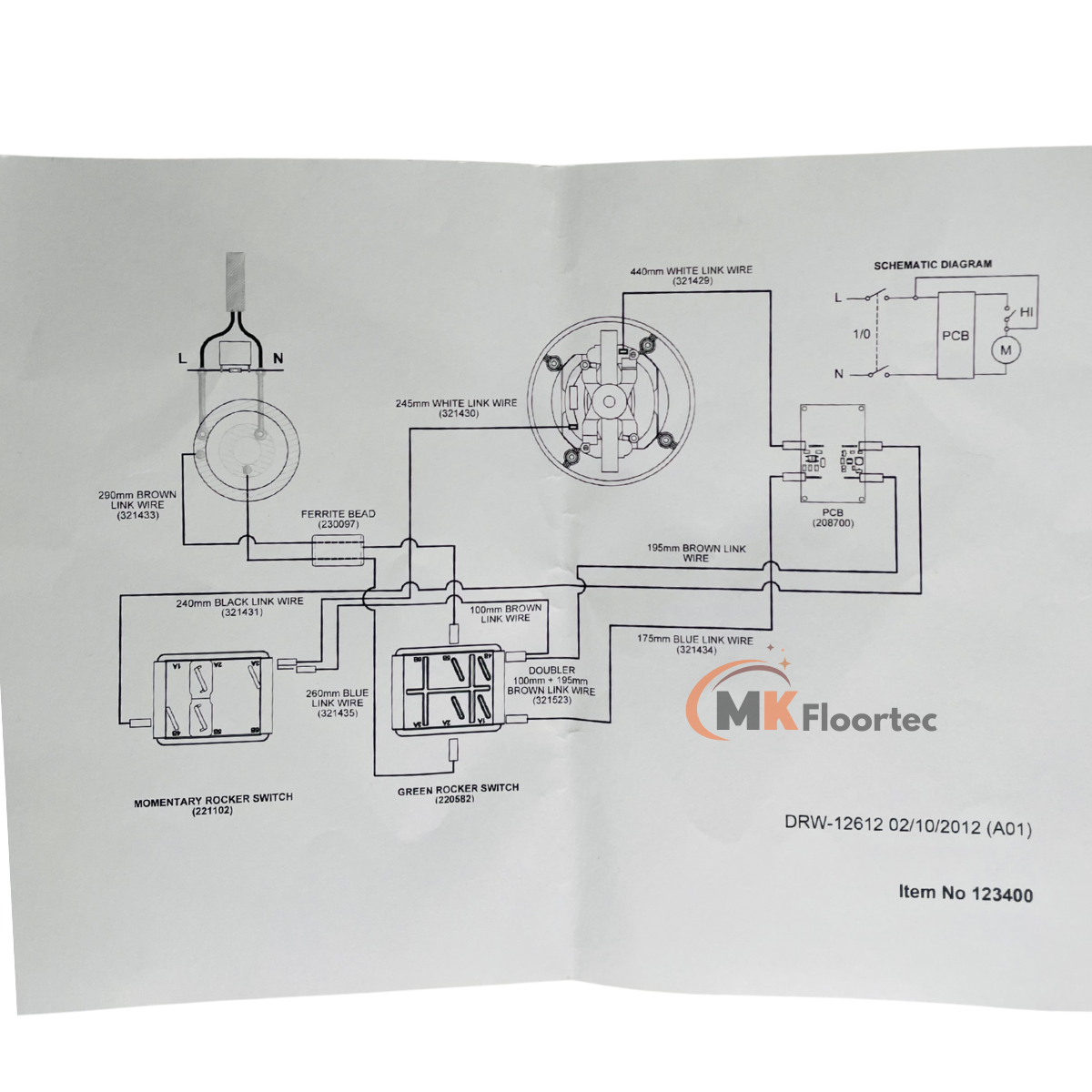 The 321990 replacement 4-wire printed circuit board enables Numatic, Henry, and Hetty Autosave models to switch between 1200W high power and 600W low power and vice versa by toggling the Red Hi/Low rocker switch.