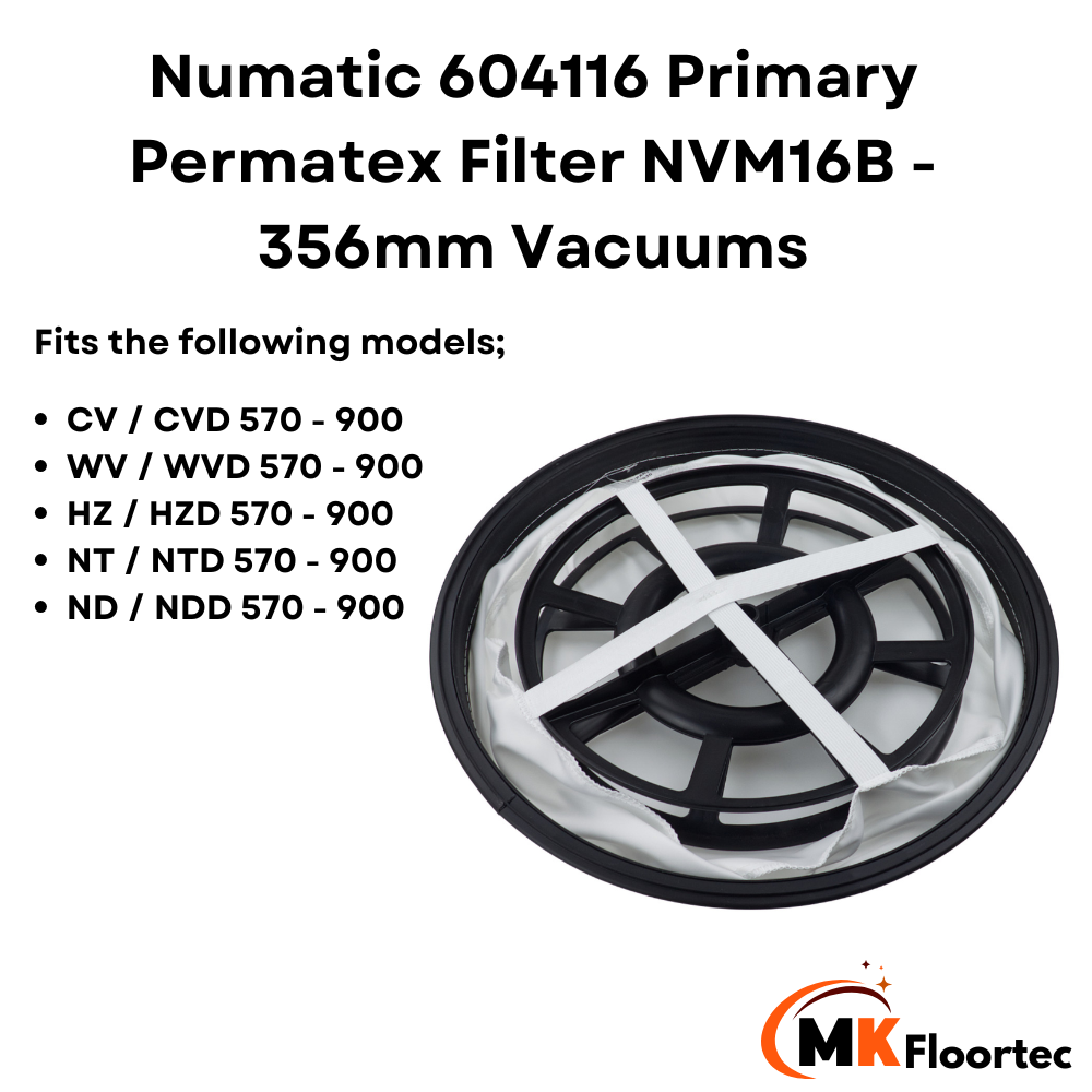 Numatic 604116 Primary Permatex Filter NVM16B - 356mm Vacuums