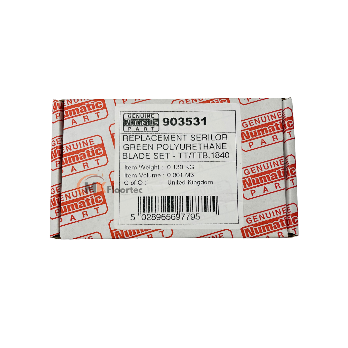 Genuine Numatic 903531 TT1840 Squeegee Blades Set. Green Polyurethane Squeegee Blade Set – Front and Rear.