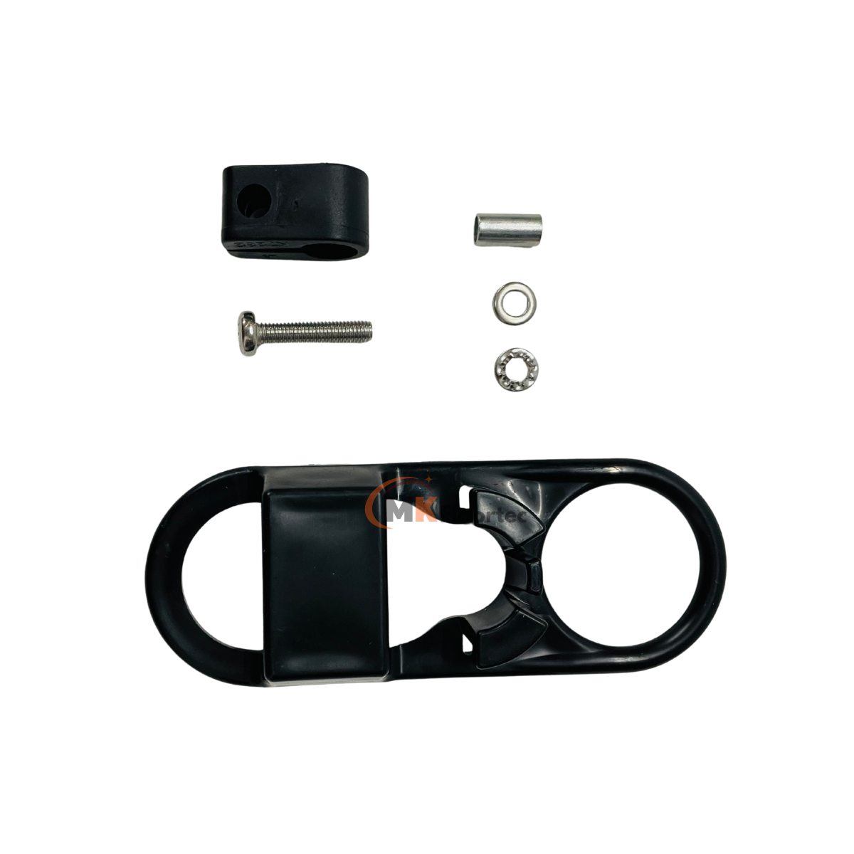 Numatic 904162 Cable Stress Relief Conversion Kit, most Numatic floor scrubber dryers and floor machines are equipped with either this style of cable tension unit or the older rubber type. This kit is designed to attach to the rear of the machine's handle, allowing the mains cable to loop through it. This setup alleviates the strain at the entry point of the mains cable into the handle, helping to prevent damage.