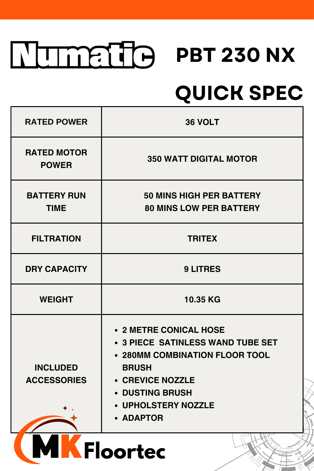 How Powerful is the Numatic PBT230NX Compared to Mains?