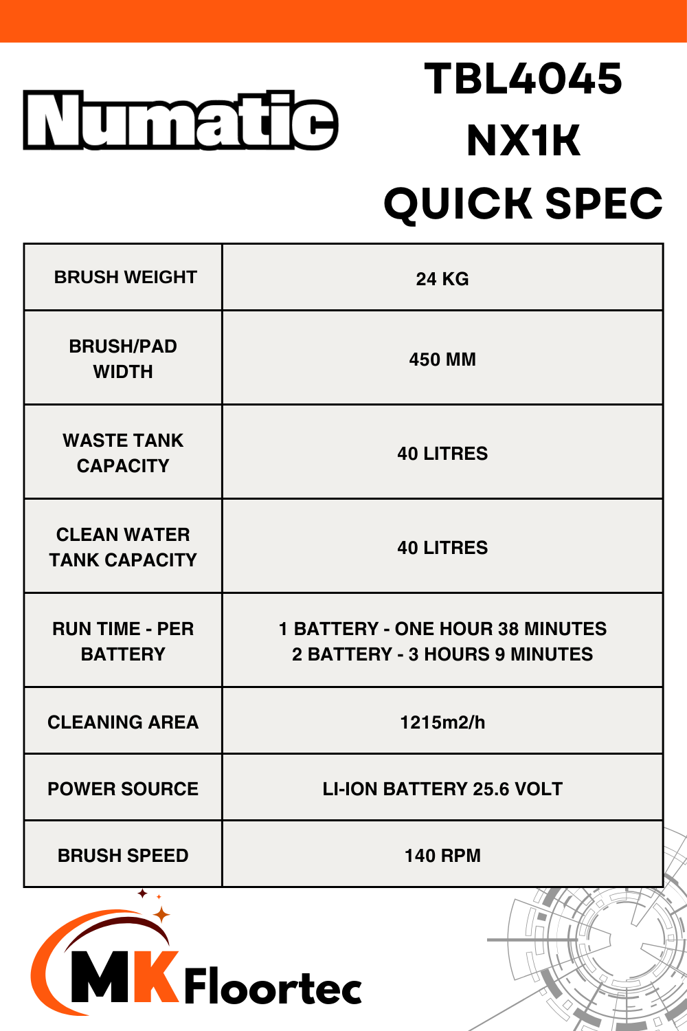 Numatic TBL4045 TwinTec Cordless Floor Cleaning Scrubber Dryer Battery Powered NX1K