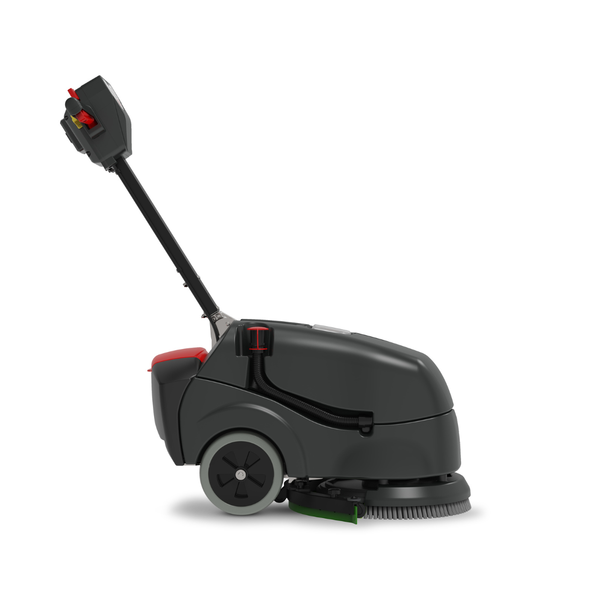 - Exceptional Manoeuvrability: Engineered with a pivoting squeegee blade system located directly behind the scrubbing brush. This design allows the machine to maintain a remarkably compact turning circle and ensures total water recovery even during tight turns, making it the most agile solution for narrow corridors and crowded environments.