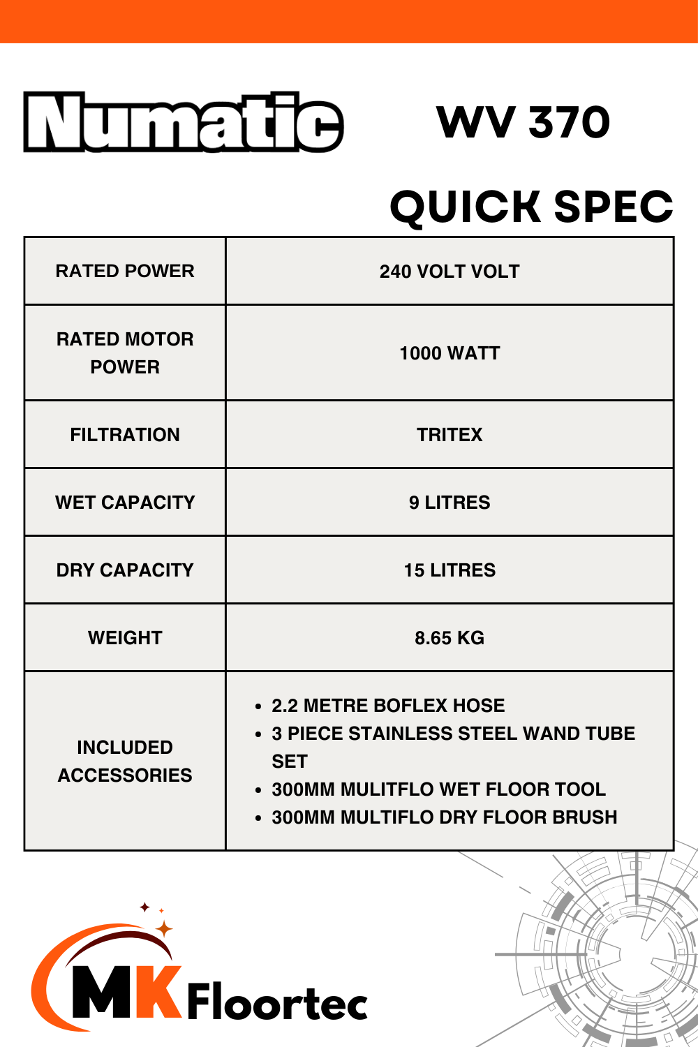 Numatic WV370 Commercial Wet or Dry Vacuum Cleaner 240 Volt - 240 Volt is backordered and will ship as soon as it is back in stock.