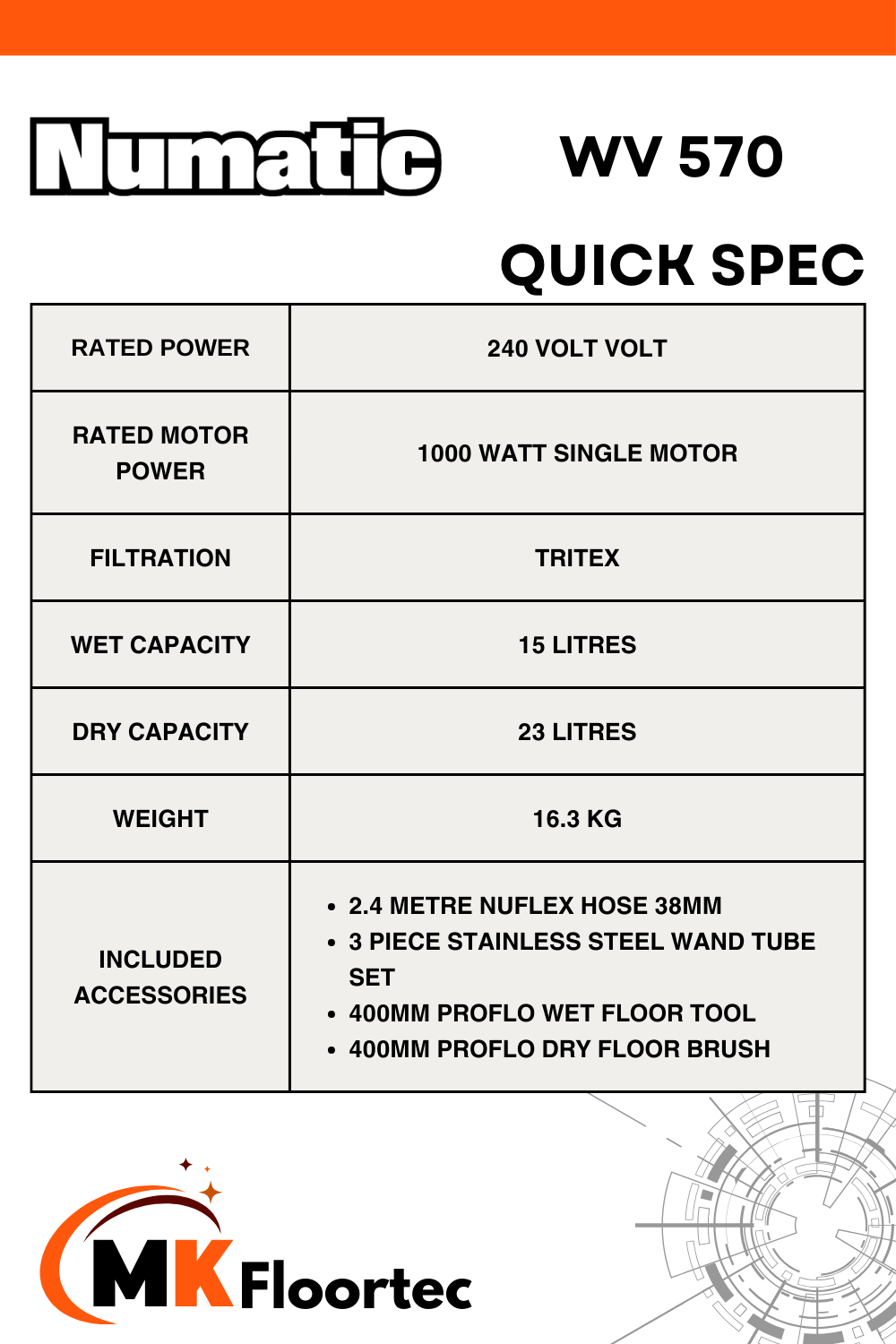 Additionally, there is a dual motor version available that offers enhanced power and performance. For more information, please check out the Numatic WVD570 model with the twin motor option.