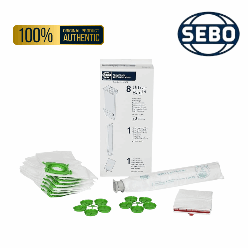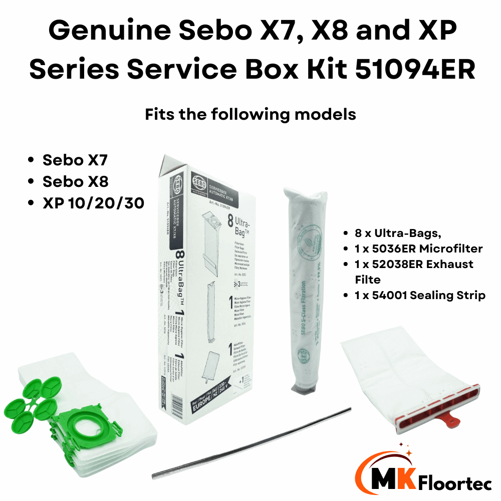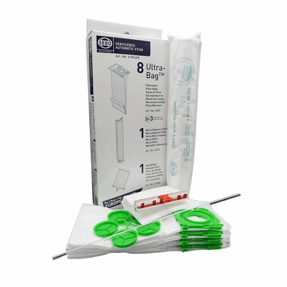 Genuine Sebo 51094ER X7 - X8 - XP Series Service Box Kit. Changing the filters enhances the longevity of the machine and ensures optimal performance. The X Series Service Box includes;