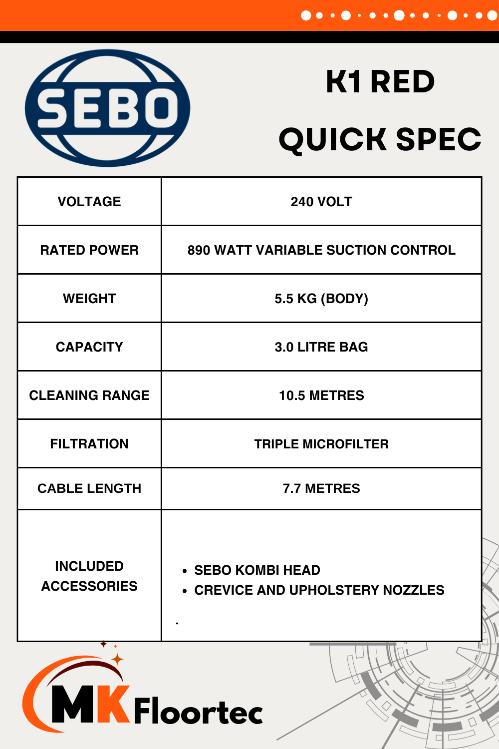 At MK Floortec, we have proudly partnered with SEBO for 40 years. From the outset, we recognised the superior quality, performance, and value that SEBO vacuum cleaners provide. When you purchase a new SEBO vacuum cleaner, or spare parts and accessories, you can do so with confidence, knowing you are buying from SEBO experts.